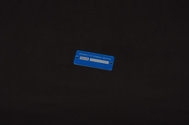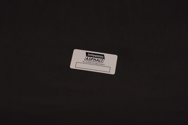 Tabliczka inwentaryzacyjna zwykle zawiera nazwę właściciela i numer inwentarzowy. Może zawierać również kod kreskowy i dodatkowe dane np.: wagę, wymiary itp.
